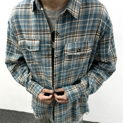 Мужская винтажная фланелевая рубашка в клетку с длинными рукавами и бахромой