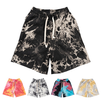 Мужские хлопковые спортивные шорты 320 г для лета, модная повседневная одежда для галстука с краской до середины талии, официальная шерстяная Баскетбольная одежда